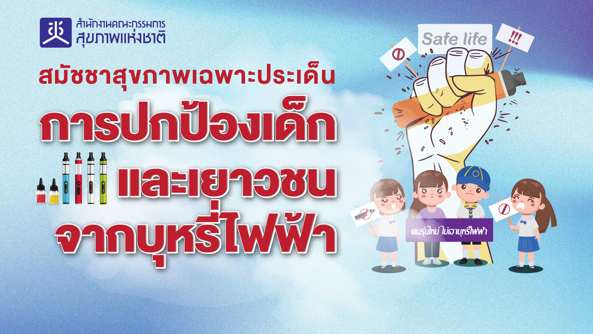 เมื่อวันที่ 13 พฤษภาคม 2567 ณ อาคารสุขภาพแห่งชาติ ชั้น 6 ภายในกระทรวงสาธารณสุข จ.นนทบุรี โดยภาคีเครือข่ายหน่วยงาน องค์กร ทั้งภาครัฐ ภาควิชาการ ภาคเอกชน/ประชาสังคม ได้ร่วมกันมีฉันทมติเห็นชอบต่อกรอบทิศทางนโยบาย (Policy Statement) และสาระสำคัญประกอบกรอบทิศทางนโยบายของการปกป้องเด็กและเยาวชนจากบุหรี่ไฟฟ้า สำหรับกรอบทิศทางนโยบายดังกล่าว มุ่งเน้นการปกป้องคุ้มครองเด็กและเยาวชนจากภยันตรายและการเสพติดของบุหรี่ไฟฟ้า โดยดำเนินการตามที่คณะกรรมการควบคุมผลิตภัณฑ์ยาสูบแห่งชาติ (คผยช.) เห็นชอบตาม “มาตรการการป้องกันและควบคุมการแพร่ระบาดบุหรี่ไฟฟ้าในประเทศไทย” เพื่อป้องกันและควบคุมการแพร่ระบาดบุหรี่ไฟฟ้าในกลุ่มเด็กและเยาวชน ซึ่งประกอบไปด้วย 5 มาตรการที่สำคัญ ทั้งนี้