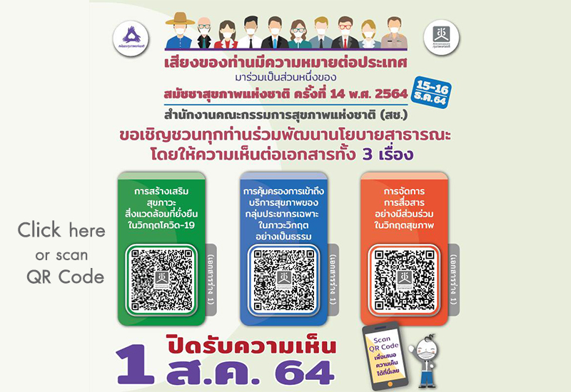 💡มาร่วมเป็นส่วนหนึ่งของสมัชชาสุขภาพแห่งชาติ ครั้งที่ 14 พ.ศ. 2564 ระหว่างวันที่ 15-16 ธ.ค. 2564