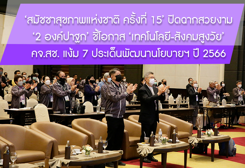 รูดม่านปิดงาน “สมัชชาสุขภาพแห่งชาติ ครั้งที่ 15” อย่างชื่นมื่น ‘ดร.เอนก’ ร่วมปาฐกถาตอกย้ำแนวคิดไทยส่งออกนวัตกรรมสู่โลก ด้าน “เจิมศักดิ์” สะท้อนภาพความเหลื่อมล้ำในสังคมสูงวัย เสนอระบบการออมใหม่แฝงในภาษี VAT ขณะที่ประธาน คจ.สช. แง้ม 7 ประเด็นใหม่เตรียมพัฒนาสู่ระเบียบวาระสมัชชาฯ ครั้งที่ 16