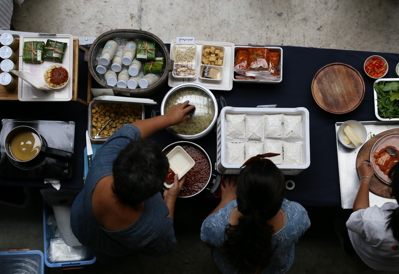 “มูลนิธิเกษตรกรรมยั่งยืนทำโครงการปันอาหารปันชีวิต รวบรวมผู้คนที่สนับสนุนเงินซื้อผักปลอดสารพิษจากเกษตรกรทั่วประเทศแล้วมาบริจาคให้กับกลุ่มคนที่มีปัญหา ทำให้พวกเราพออยู่ได้ เปิดครัวกลางสองเดือน ทำอาหารปันให้คนในชุมชนสองร้อยห้าสิบคน รวมทั้งให้คนไร้บ้านด้วย” มานพเล่า