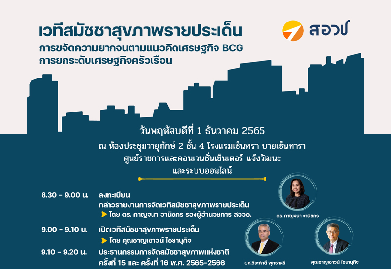 ขอเชิญเข้าร่วมขอเชิญเข้าร่วมเวทีสมัชชาสุขภาพแห่งชาติประเด็นการขจัดความยากจนตามแนวคิดเศรษฐกิจ BCG: การยกระดับเศรษฐกิจครัวเรือน