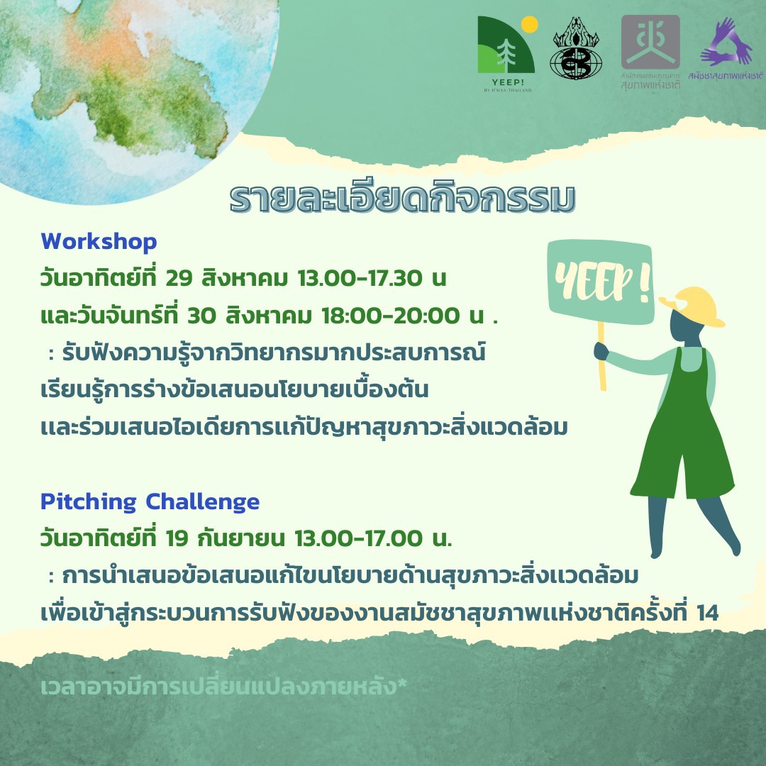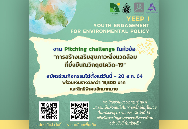 เปิดรับสมัครทีมผู้เข้าร่วมเเข่งขัน Pitching Challenge เพื่อเสนอข้อพัฒนานโยบายด้านสุขภาวะสิ่งเเวดล้อม สำหรับเสียงของเยาวชนโดยเฉพาะ